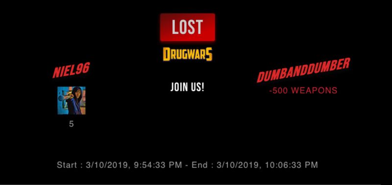 Check my latest fight ! niel96 vs dumbanddumberdumbanddumber (39)in #drugwars-fight • 7 years ago (edited) #gaming #fight #dw #jjangjjangman