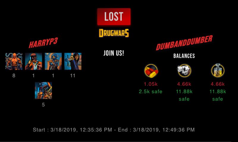 Check my latest fight ! harryp3 vs dumbanddumberdumbanddumber (39)in #drugwars-fight • 7 years ago #gaming #fight #dw