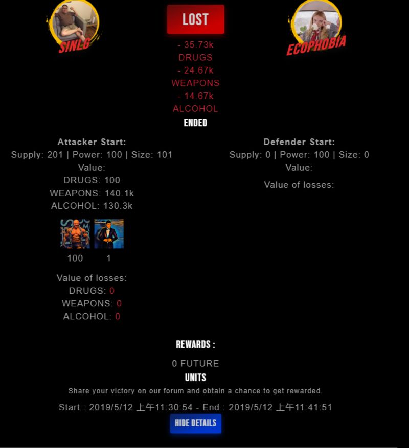 Check my latest fight ! sinlg vs ecophobiaecophobia (28)in #drugwars-fight • 7 years ago #gaming #fight #dw