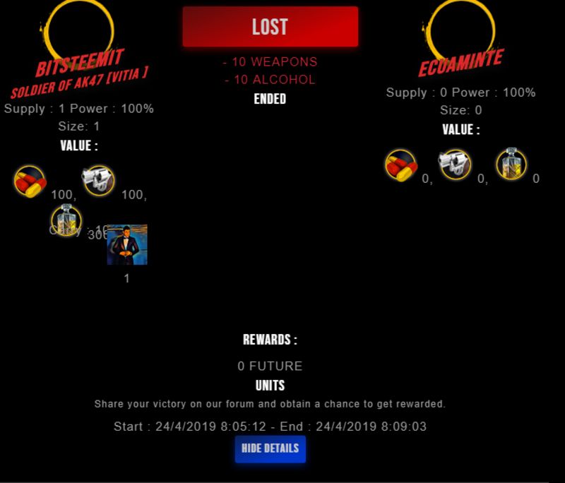 Congratulations @ecuaminte ! Your fight received an upvote of 2.3% from the King Dealer as incentive for your activity and as a gratitude for your support to the game.