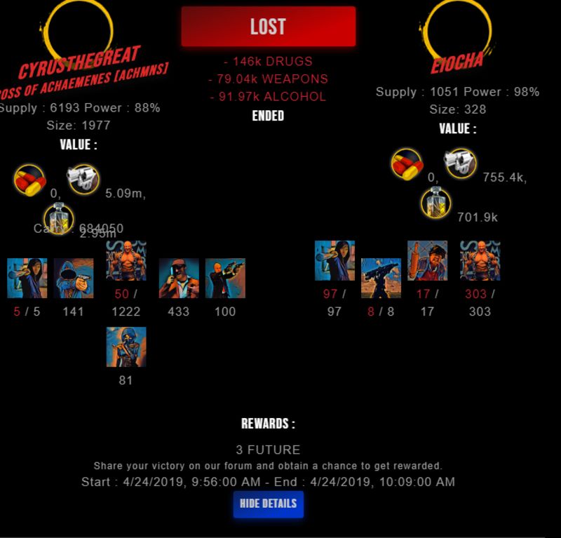 Check my latest fight ! cyrusthegreat vs eiochaeiocha (29)in #drugwars-fight • 7 years ago #gaming #fight #dw