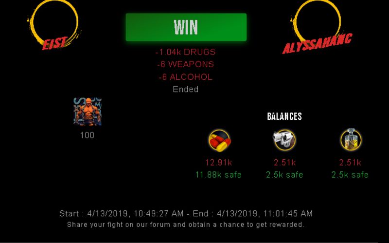 Congratulations @eist ! Your fight received an upvote of 11% from the Dealer as incentive for your activity and as a gratitude for your support to the game.
