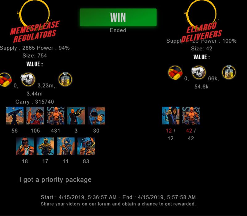 Congratulations @ellargo ! Your fight received an upvote of 7% from the Dealer as incentive for your activity and as a gratitude for your support to the game.