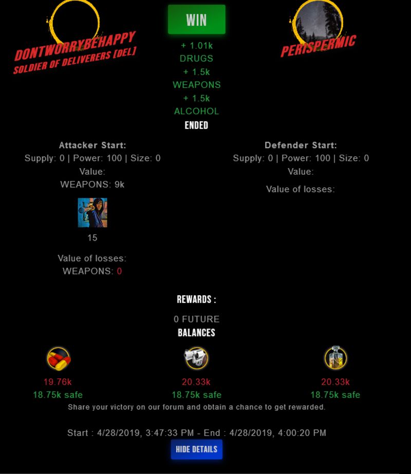 Check my latest fight ! dontworrybehappy vs perispermicellargo (30)in #drugwars-fight • 7 years ago #gaming #fight #dw