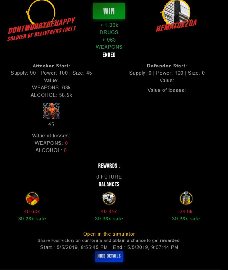 Check my latest fight ! dontworrybehappy vs hematozzoaellargo (30)in #drugwars-fight • 7 years ago #gaming #fight #dw