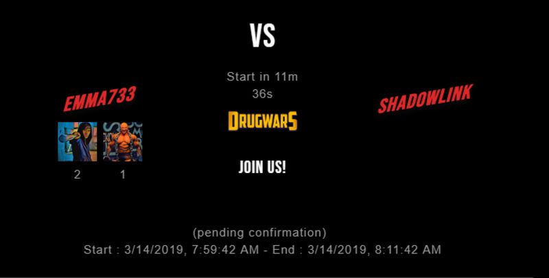 Check my latest fight ! emma733 vs shadowlinkemma733 (59)in #drugwars-fight • 7 years ago #gaming #fight #dw