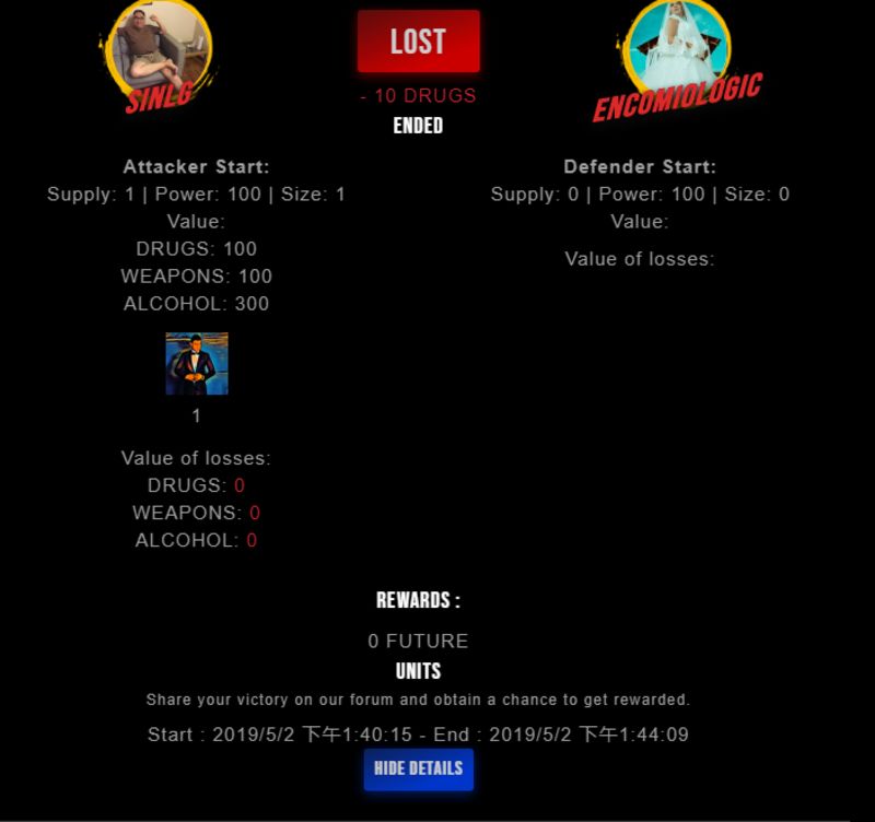 Check my latest fight ! sinlg vs encomiologicencomiologic (26)in #drugwars-fight • 7 years ago #gaming #fight #dw
