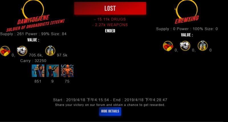 Check my latest fight ! undefined vs undefinedenemying (29)in #drugwars-fight • 7 years ago #gaming #fight #dw