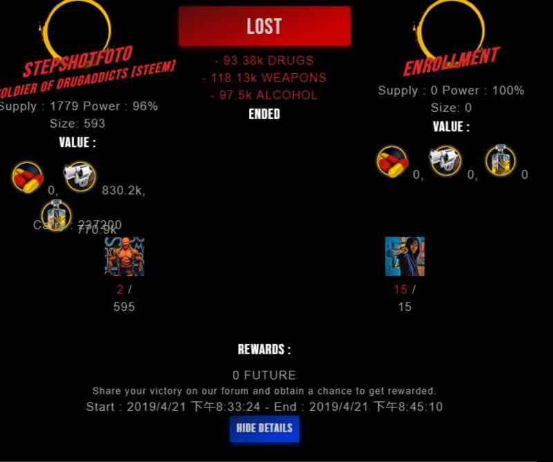 Check my latest fight ! stepshotfoto vs enrollmentenrollment (27)in #drugwars-fight • 7 years ago #gaming #fight #dw