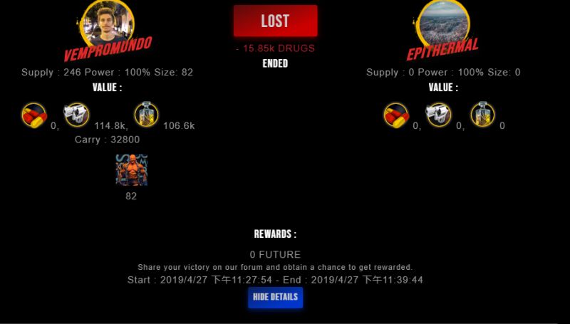 Check my latest fight ! vempromundo vs epithermalepithermal (27)in #drugwars-fight • 7 years ago #gaming #fight #dw