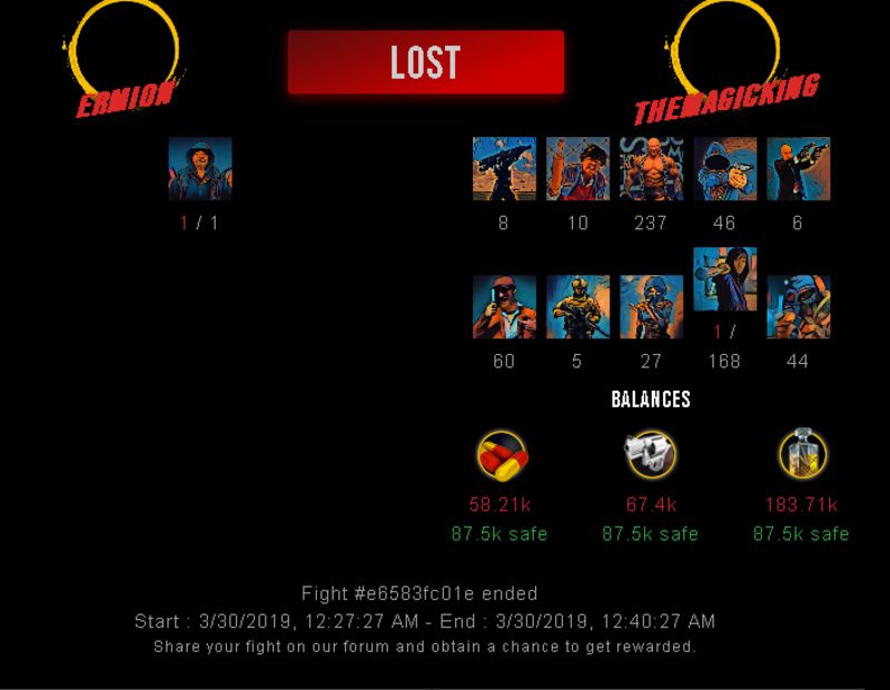 Congratulations @ermion ! Your fight received an upvote of 10% from the Dealer as incentive for your activity and as a gratitude for your support to the game.