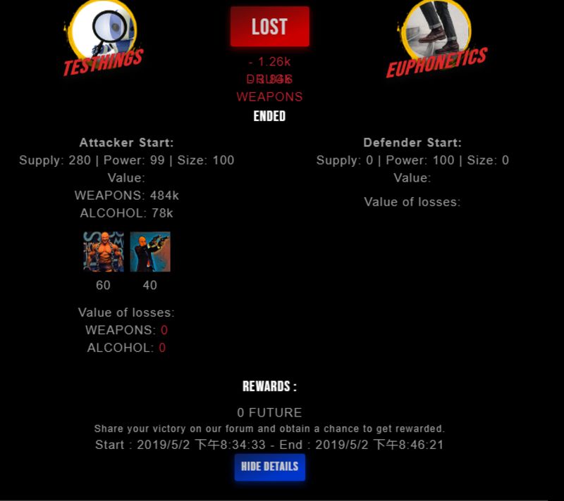 Check my latest fight ! testhings vs euphoneticseuphonetics (26)in #drugwars-fight • 7 years ago #gaming #fight #dw