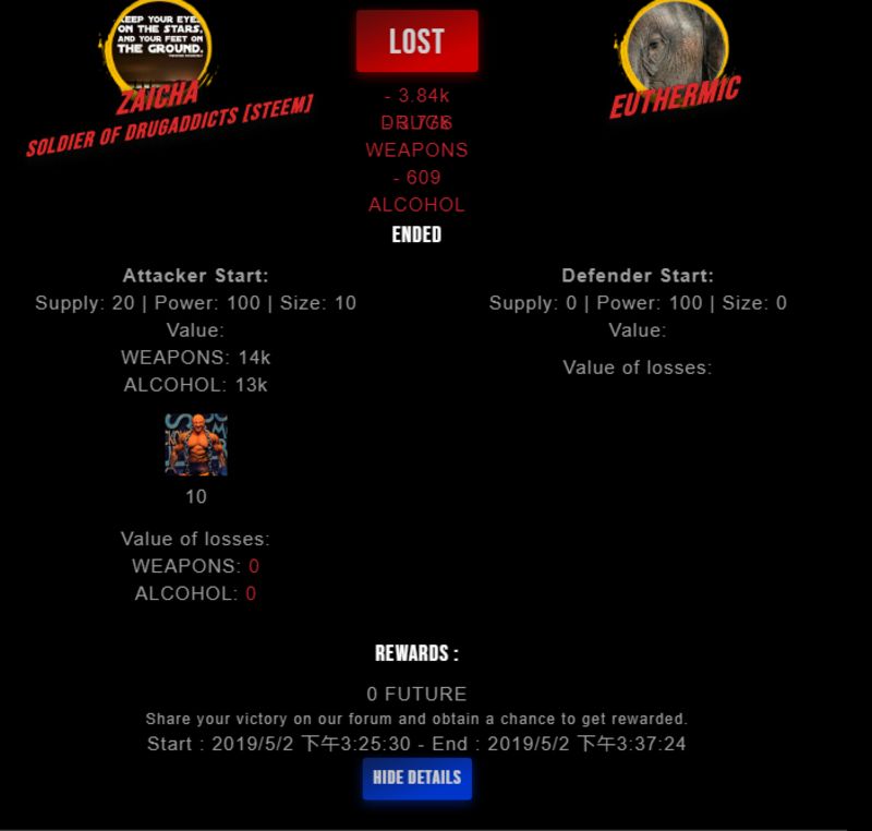 Check my latest fight ! zaicha vs euthermiceuthermic (28)in #drugwars-fight • 7 years ago #gaming #fight #dw