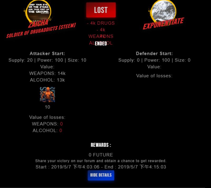 Check my latest fight ! zaicha vs exponentiateexponentiate (25)in #drugwars-fight • 7 years ago #gaming #fight #dw