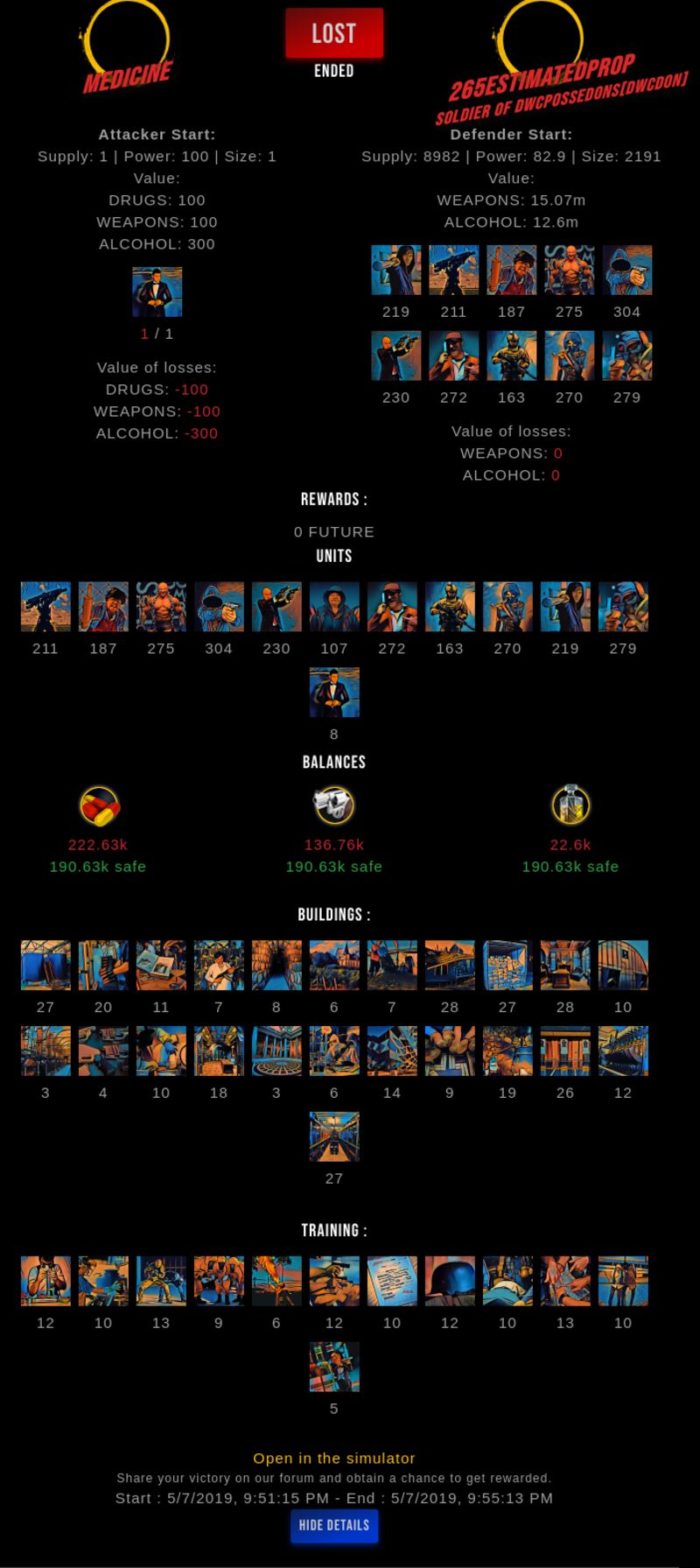 Check my latest fight ! medicine vs 265estimatedpr0peywa (43)in #drugwars-fight • 7 years ago #gaming #fight #dw