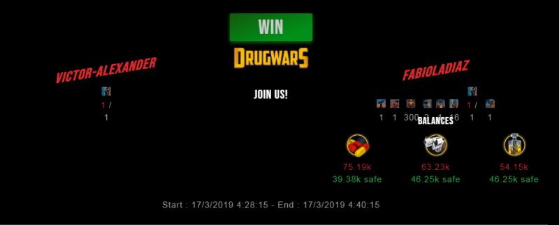 Check my latest fight ! victor-alexander vs fabioladiazfabioladiaz (46)in #drugwars-fight • 7 years ago #gaming #fight #dw