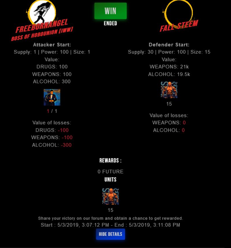 Check my latest fight ! freebornangel vs fall-steemfall-steem (39)in #drugwars-fight • 7 years ago #gaming #fight #dw