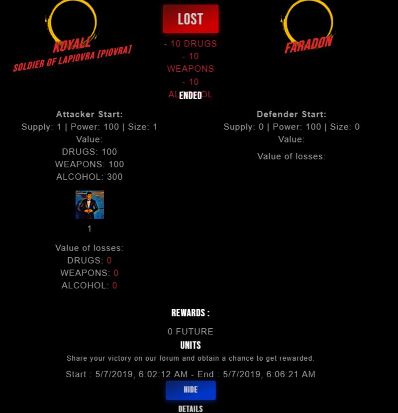 Check my latest fight ! koyall vs faradonfaradon (45)in #drugwars-fight • 7 years ago #gaming #fight #dw