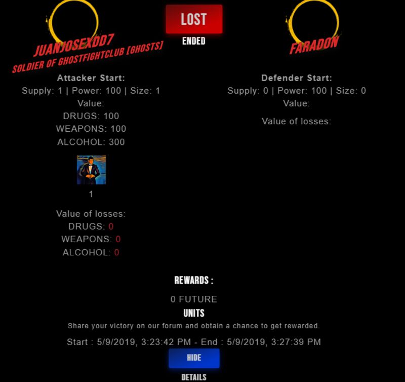 Congratulations @faradon ! Your fight received an upvote of 2% from the King Dealer as incentive for your activity and as a gratitude for your support to the game.