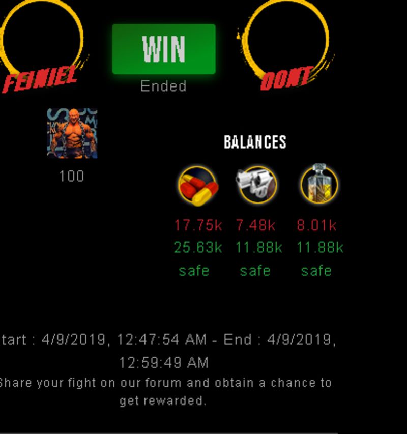 Check my latest fight ! feiniel vs oontfeiniel (36)in #drugwars-fight • 7 years ago #gaming #fight #dw