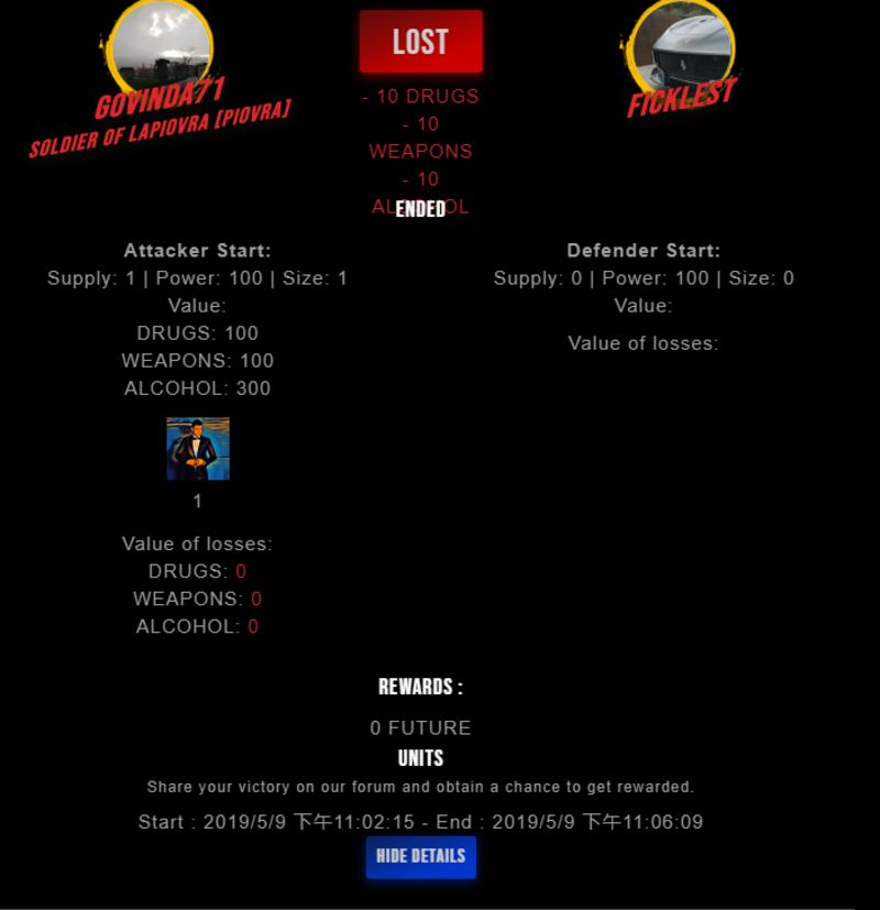 Check my latest fight ! govinda71 vs ficklestficklest (25)in #drugwars-fight • 7 years ago #gaming #fight #dw