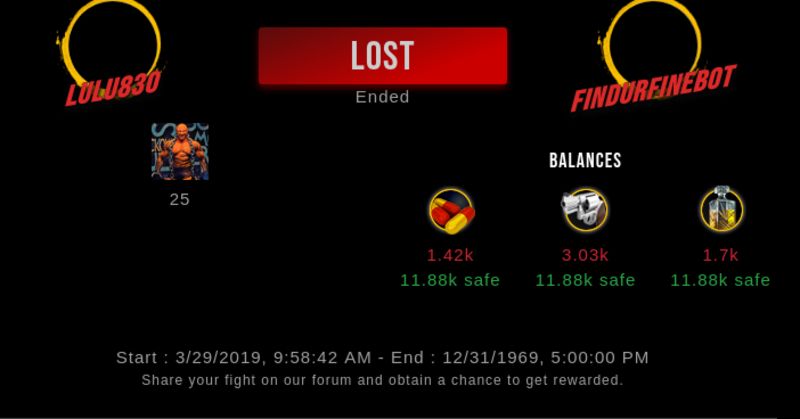 Check my latest fight ! lulu830 vs findurfinebotfindurfinebot (31)in #drugwars-fight • 7 years ago #gaming #fight #dw
