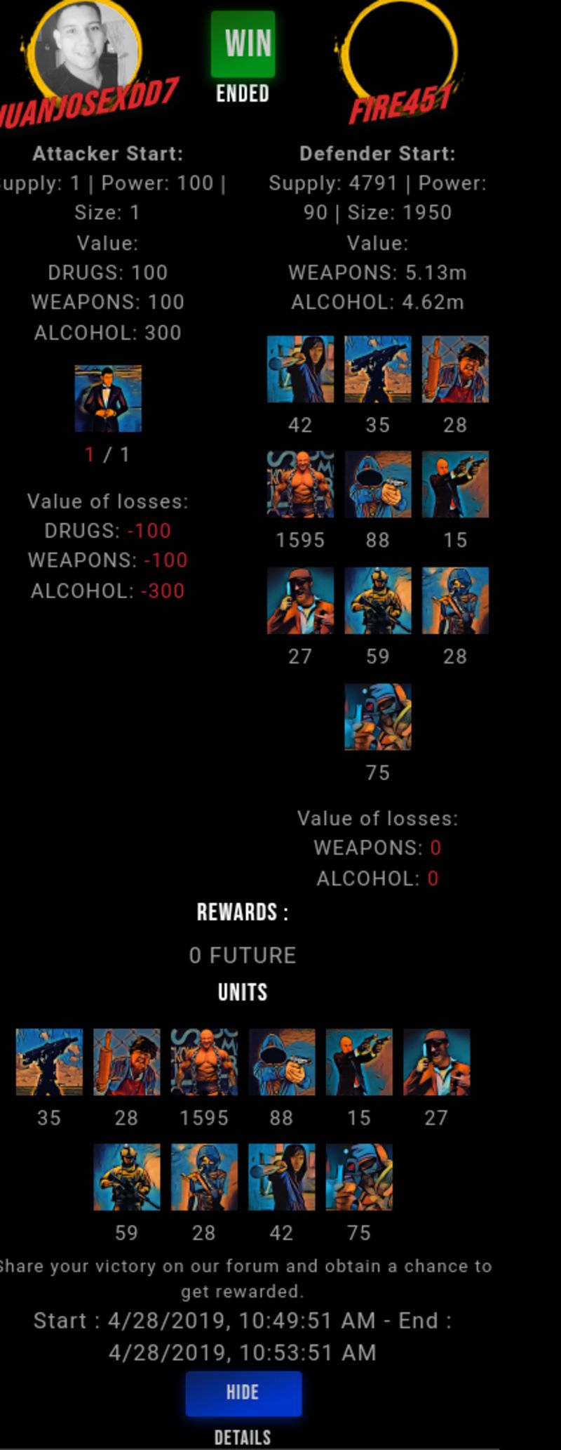Congratulations @fire451 ! Your fight received an upvote of 0.5% from the King Dealer as incentive for your activity and as a gratitude for your support to the game.