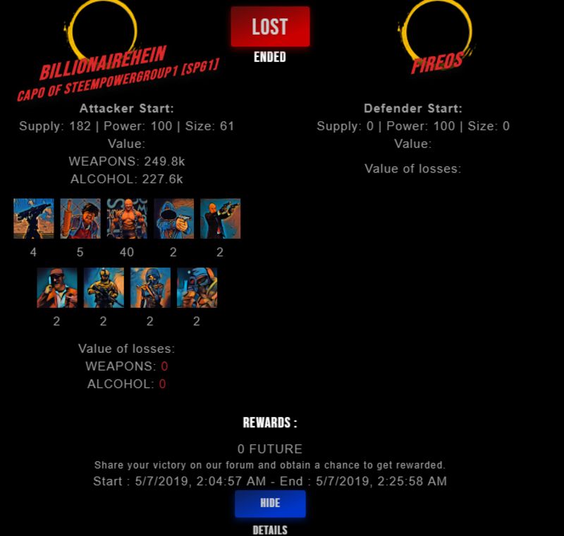 Congratulations @fireos ! Your fight received an upvote of 2% from the King Dealer as incentive for your activity and as a gratitude for your support to the game.