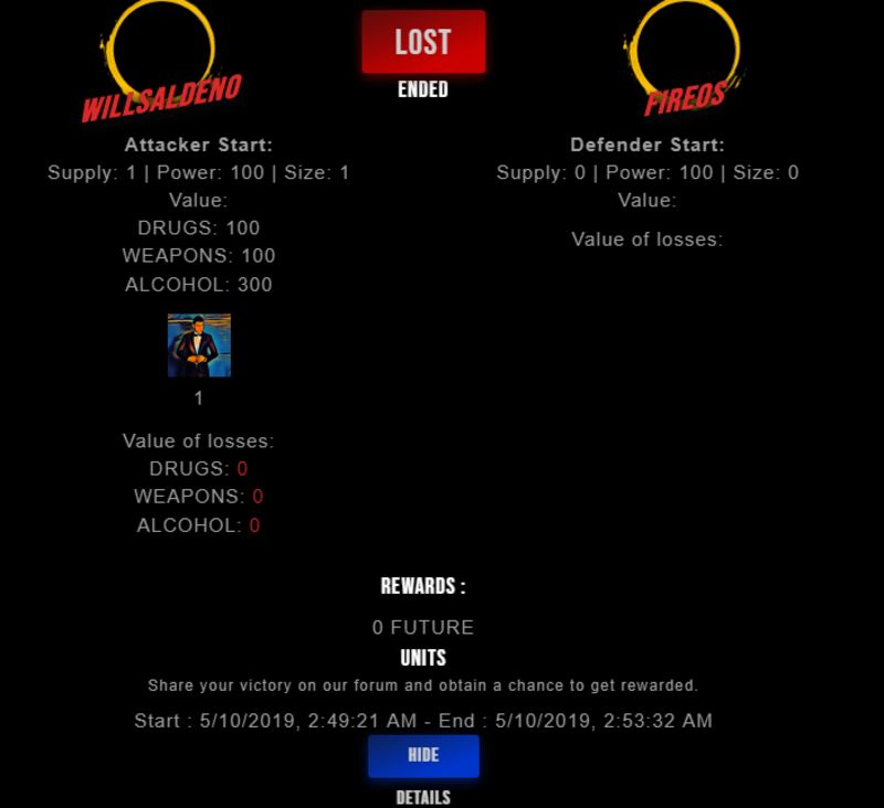 Congratulations @fireos ! Your fight received an upvote of 2% from the King Dealer as incentive for your activity and as a gratitude for your support to the game.