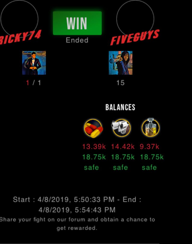 Check my latest fight ! ricky74 vs fiveguysfiveguys (38)in #drugwars-fight • 7 years ago #gaming #fight #dw