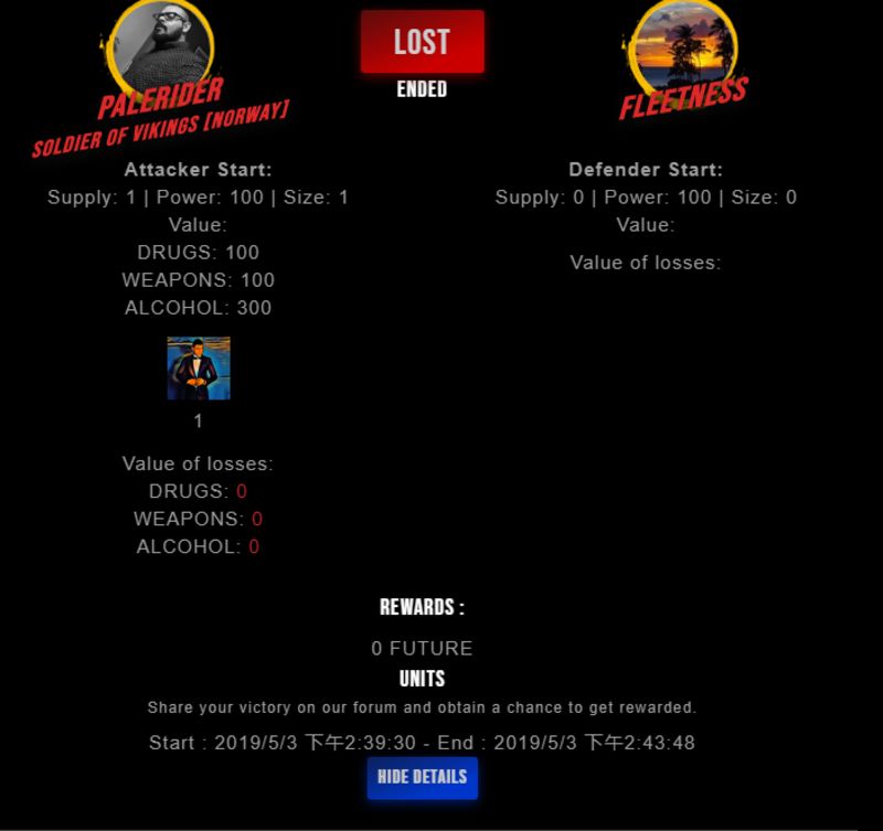 Congratulations @fleetness ! Your fight received an upvote of 10% from the Dealer as incentive for your activity and as a gratitude for your support to the game.