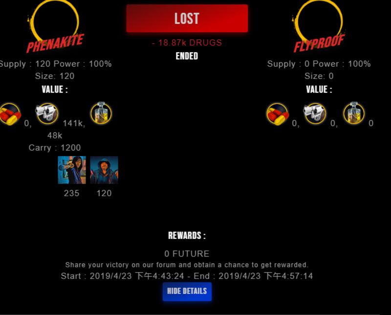 Check my latest fight ! phenakite vs flyproofflyproof (25)in #drugwars-fight • 7 years ago #gaming #fight #dw