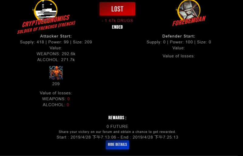 Check my latest fight ! cryptoeconomics vs forebemoanforebemoan (26)in #drugwars-fight • 7 years ago #gaming #fight #dw