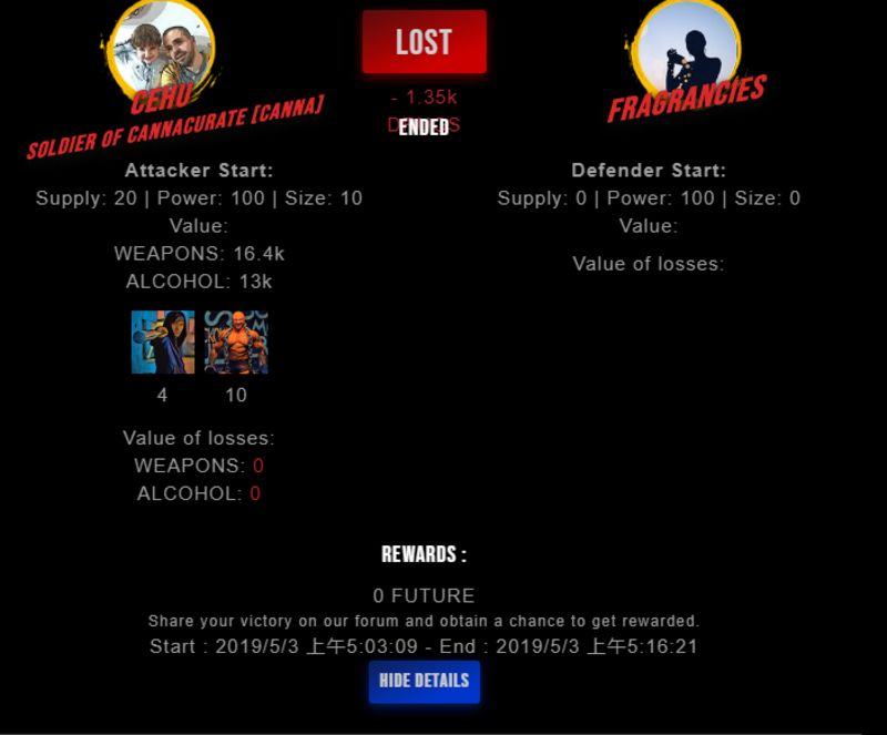 Check my latest fight ! cehu vs fragranciesfragrancies (25)in #drugwars-fight • 7 years ago #gaming #fight #dw