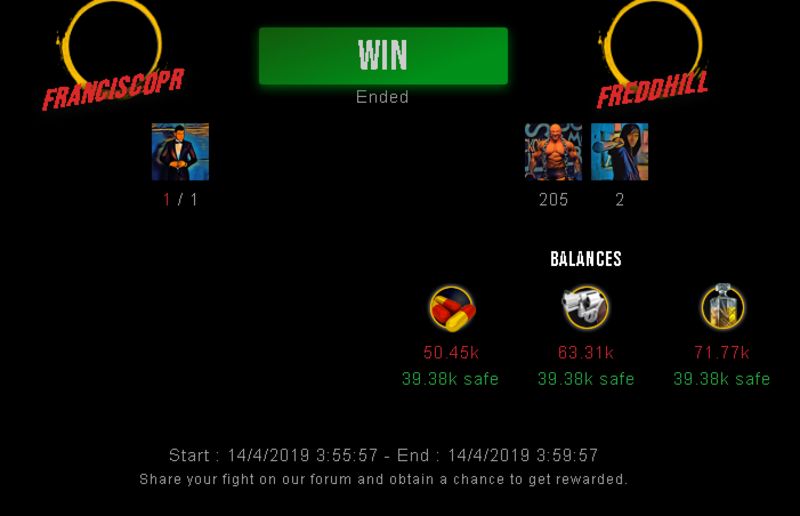 Check my latest fight ! franciscopr vs freddhillfreddhill (41)in #drugwars-fight • 7 years ago #gaming #fight #dw
