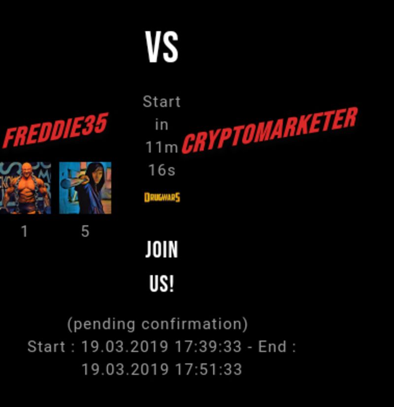 Check my latest fight ! freddie35 vs cryptomarketerfreddie35 (25)in #drugwars-fight • 7 years ago #gaming #fight #dw