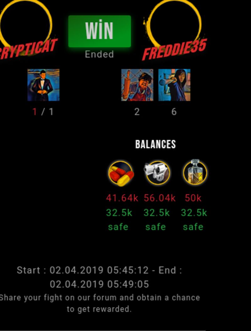 Check my latest fight ! crypticat vs freddie35freddie35 (25)in #drugwars-fight • 7 years ago #gaming #fight #dw