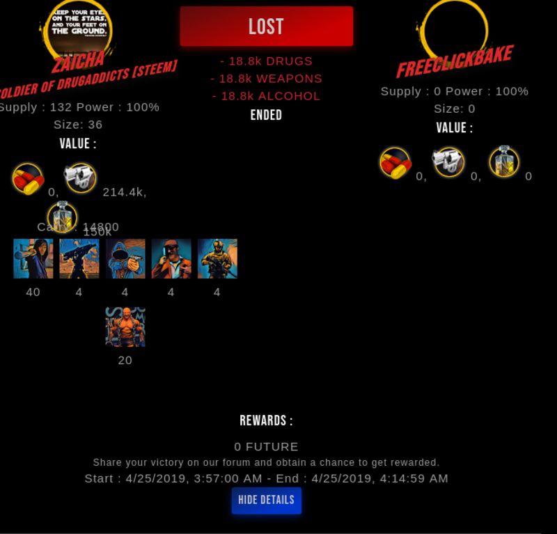 Check my latest fight ! zaicha vs freeclickbakefreeclickbake (25)in #drugwars-fight • 7 years ago #gaming #fight #dw