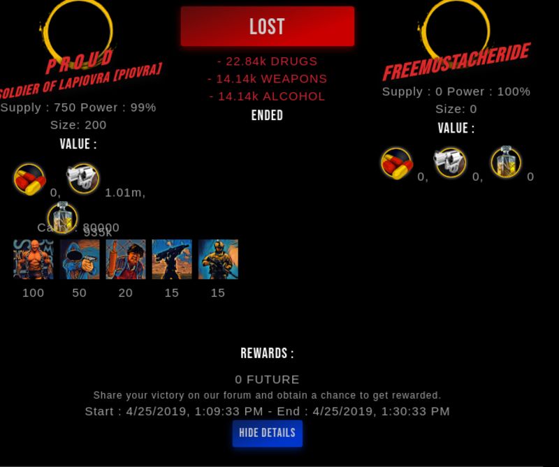 Check my latest fight ! p r o u d vs freemustacheridefreemustacheride (25)in #drugwars-fight • 7 years ago #gaming #fight #dw