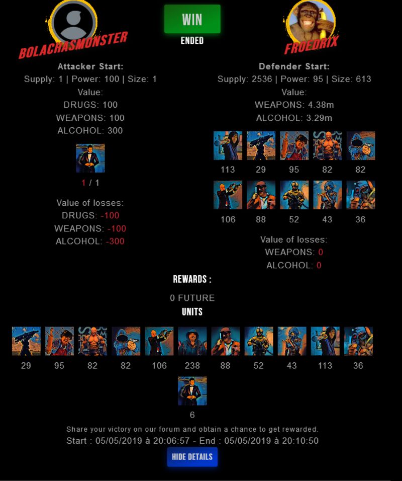 Congratulations @froedrix ! Your fight received an upvote of 1.9% from the King Dealer as incentive for your activity and as a gratitude for your support to the game.