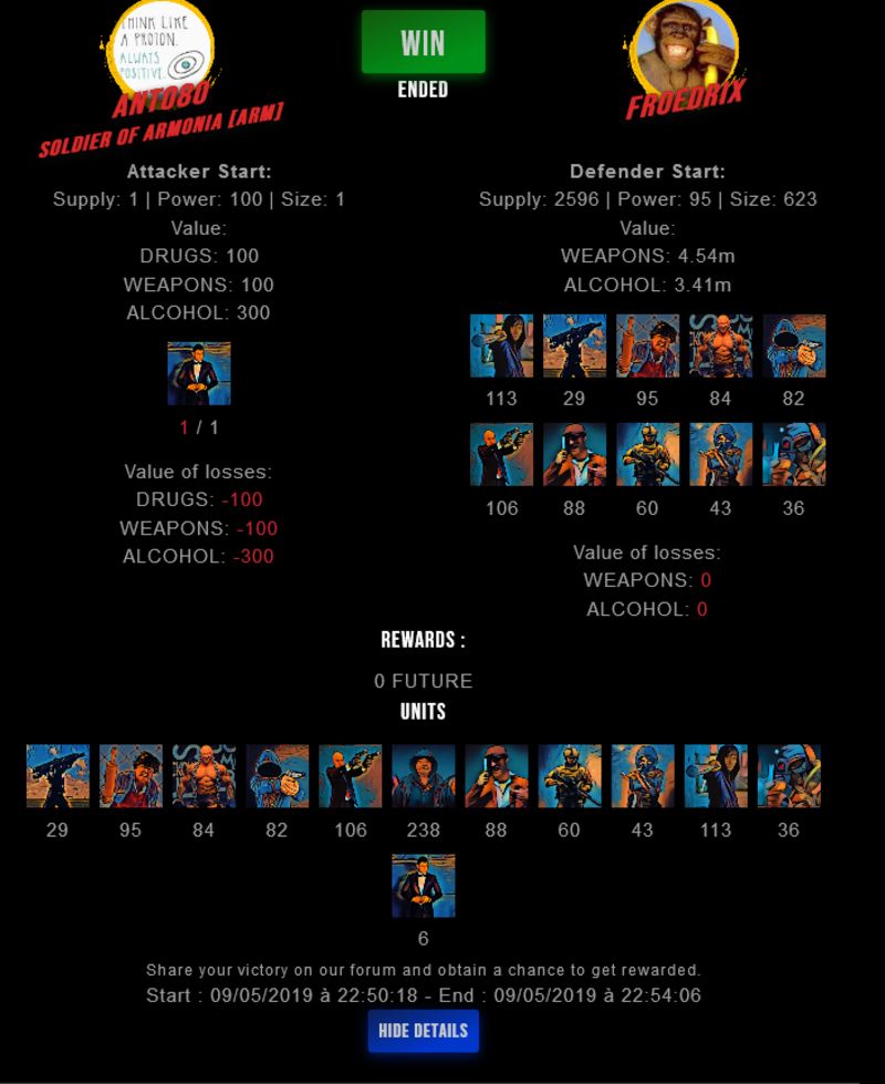 Congratulations @froedrix ! Your fight received an upvote of 1.9% from the King Dealer as incentive for your activity and as a gratitude for your support to the game.