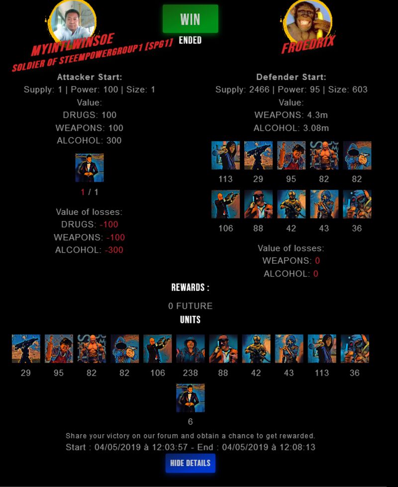 Check my latest fight ! myintlwinsoe vs froedrixfroedrix (46)in #drugwars-fight • 7 years ago #gaming #fight #dw