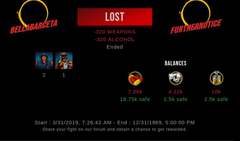 Check my latest fight ! bellabarceta vs furthernoticefurthernotice (25)in #drugwars-fight • 7 years ago #gaming #fight #dw