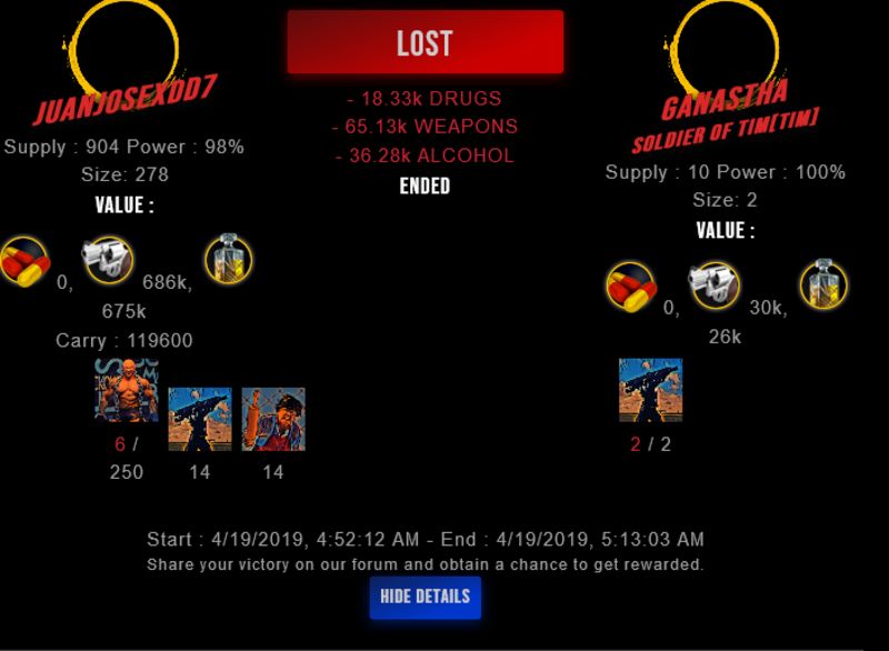 Check my latest fight ! undefined vs undefinedganastha (45)in #drugwars-fight • 7 years ago #gaming #fight #dw