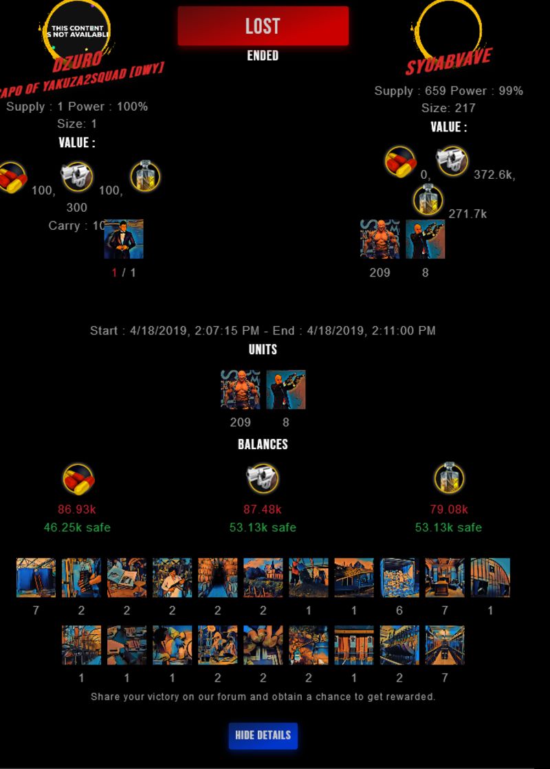 Congratulations @gansta ! Your fight received an upvote of 16% from the Dealer as incentive for your activity and as a gratitude for your support to the game.