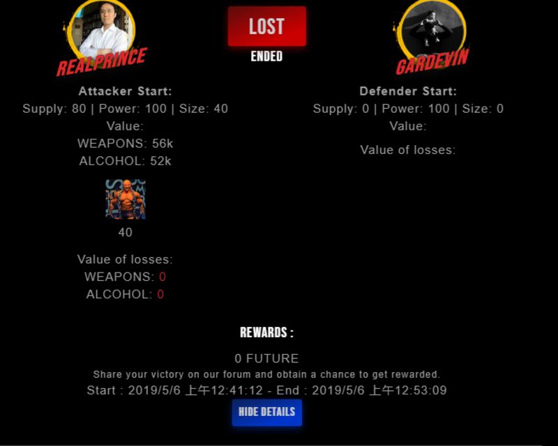 Congratulations @gardevin ! Your fight received an upvote of 10% from the Dealer as incentive for your activity and as a gratitude for your support to the game.