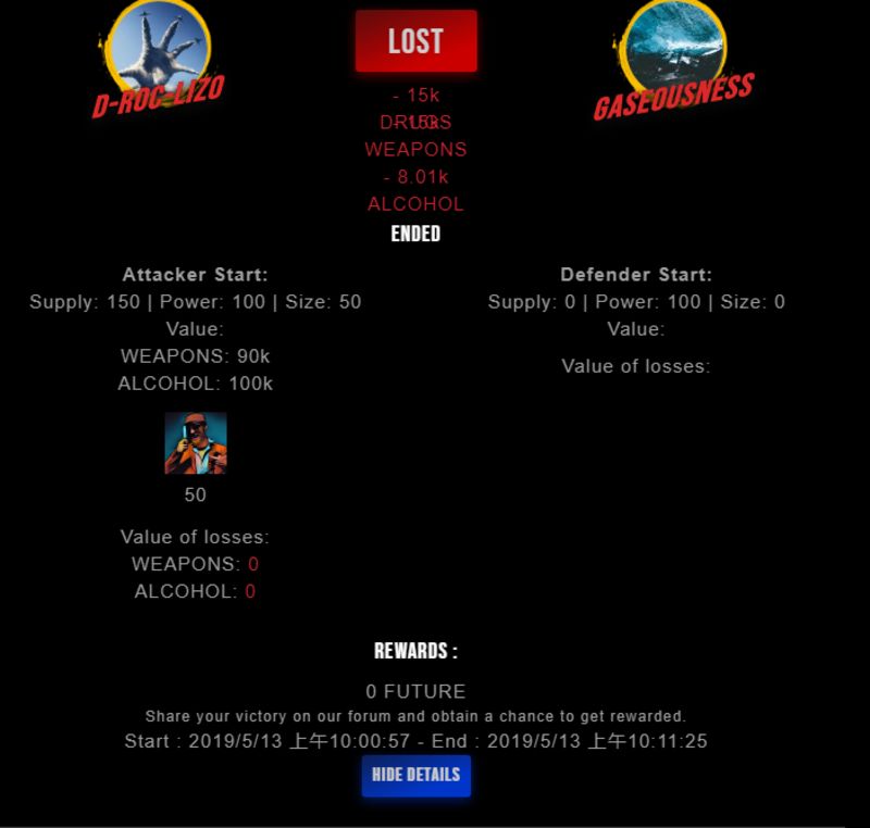 Check my latest fight ! d-roc-lizo vs gaseousnessgaseousness (25)in #drugwars-fight • 7 years ago #gaming #fight #dw
