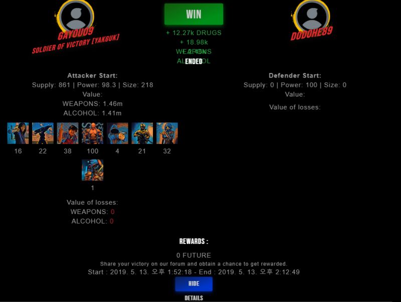 Check my latest fight ! gayou09 vs dodohe89gayou09 (42)in #drugwars-fight • 7 years ago #gaming #fight #dw