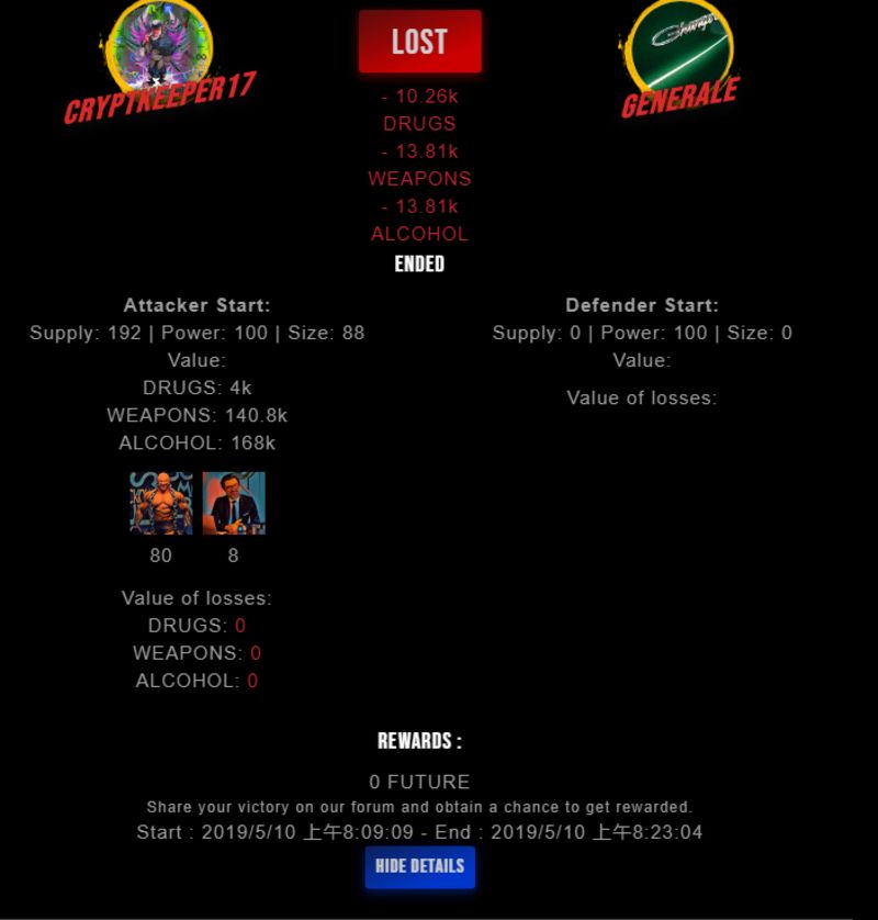 Check my latest fight ! cryptkeeper17 vs generalegenerale (26)in #drugwars-fight • 7 years ago #gaming #fight #dw