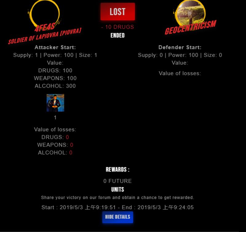 Check my latest fight ! 4fe4s vs geocentricismgeocentricism (25)in #drugwars-fight • 7 years ago #gaming #fight #dw